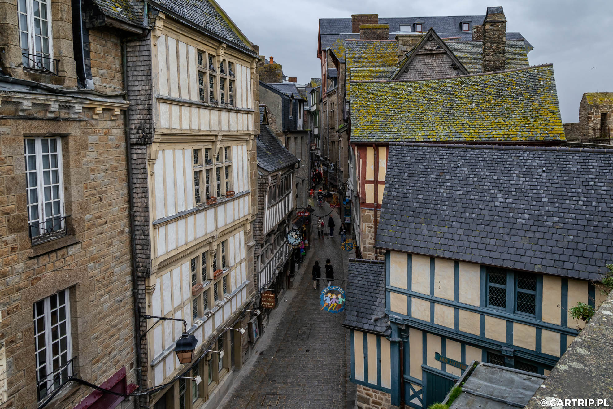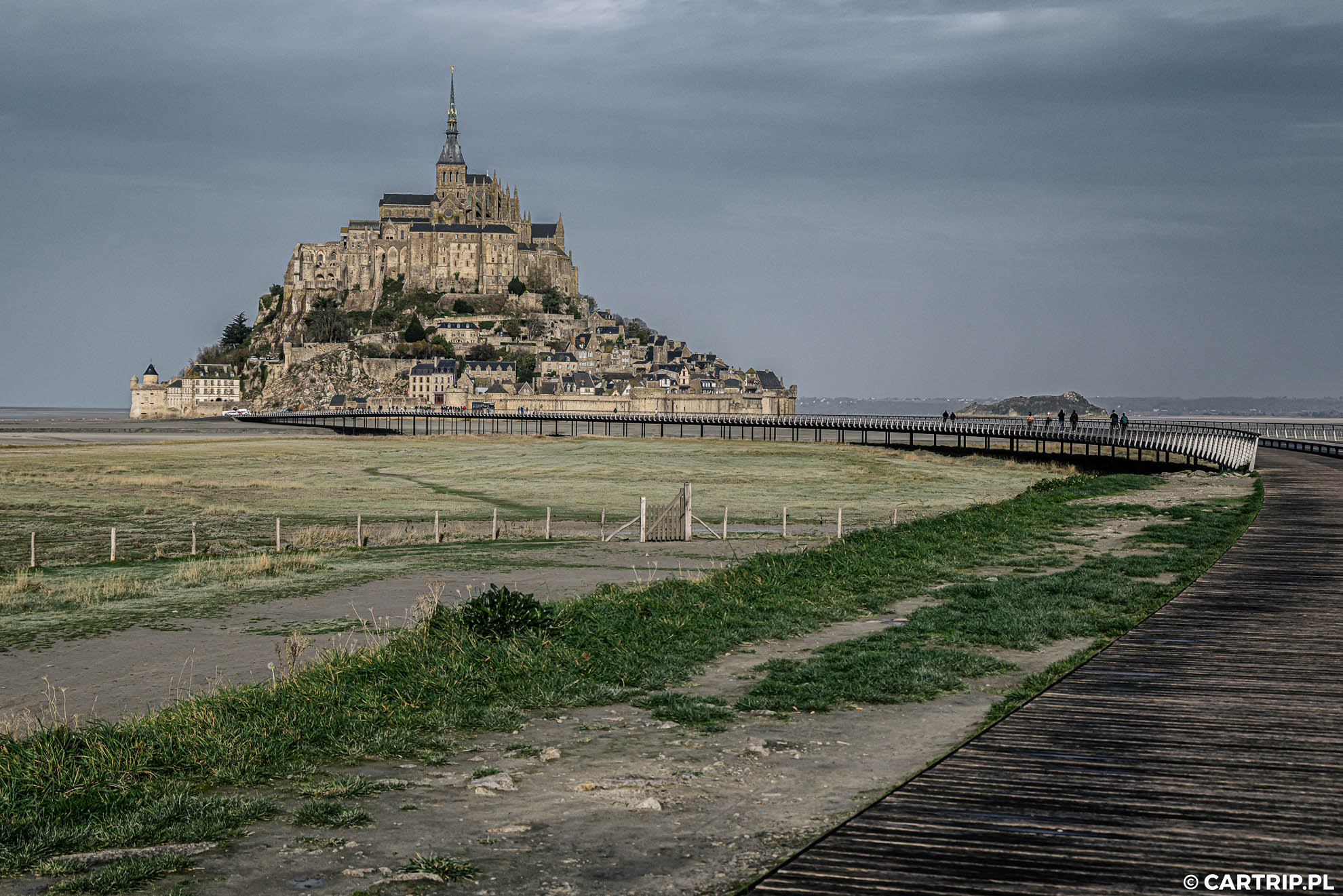 Trasę zacząłem od miejsca, które znałem wcześniej z książek i zajęć z historii sztuki. Mont-Saint-Michel okazało się zupełnie inne, niż się spodziewałem: puste, ciche, monochromatyczne. Mgła, delikatny deszcz i brak turystów sprawiły, że miałem wrażenie, jakbym przeniósł się kilka wieków wstecz. Spacerowałem wąskimi uliczkami, słuchałem wiatru odbijającego się od murów i patrzyłem, jak odpływ maluje na piasku abstrakcyjne wzory.