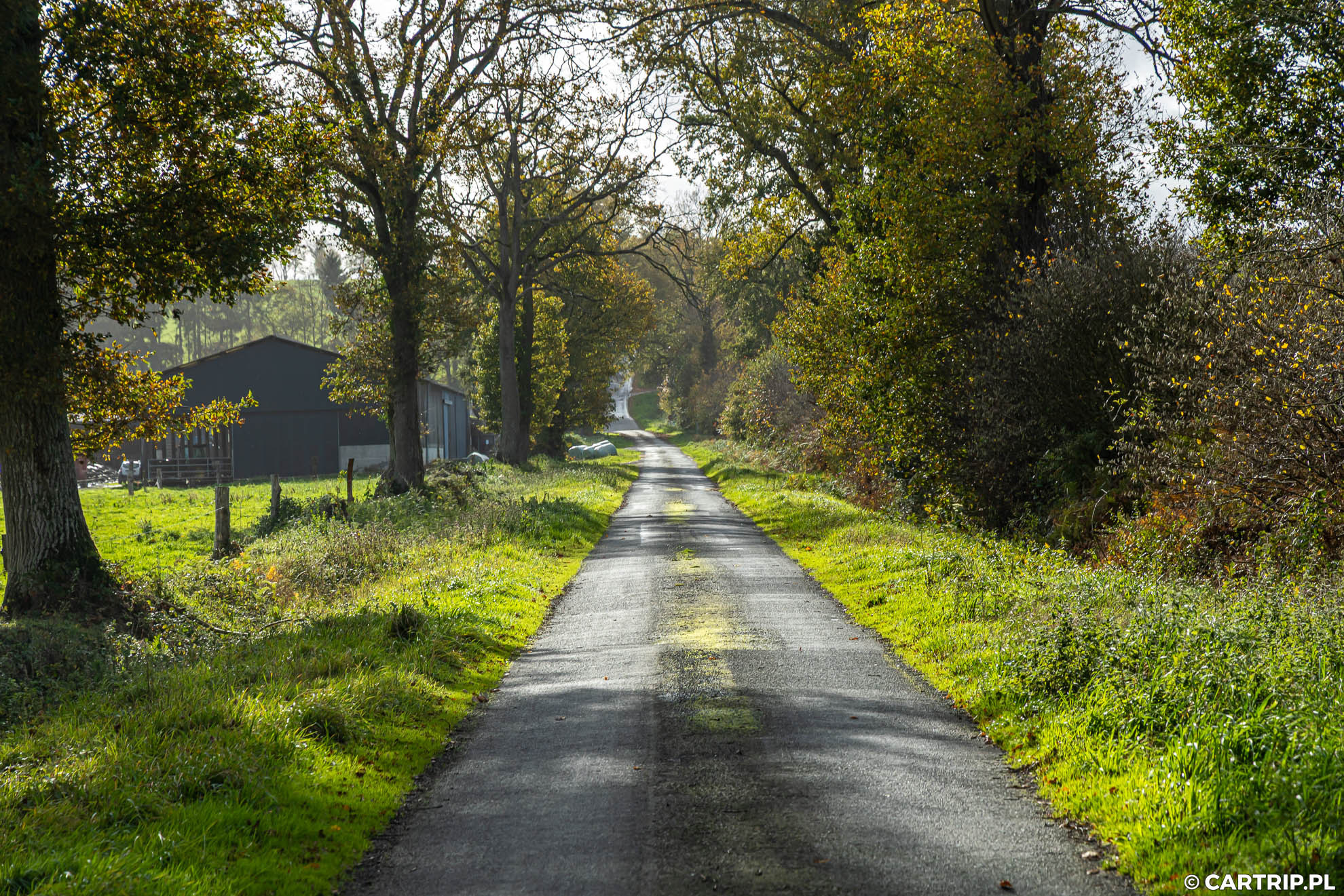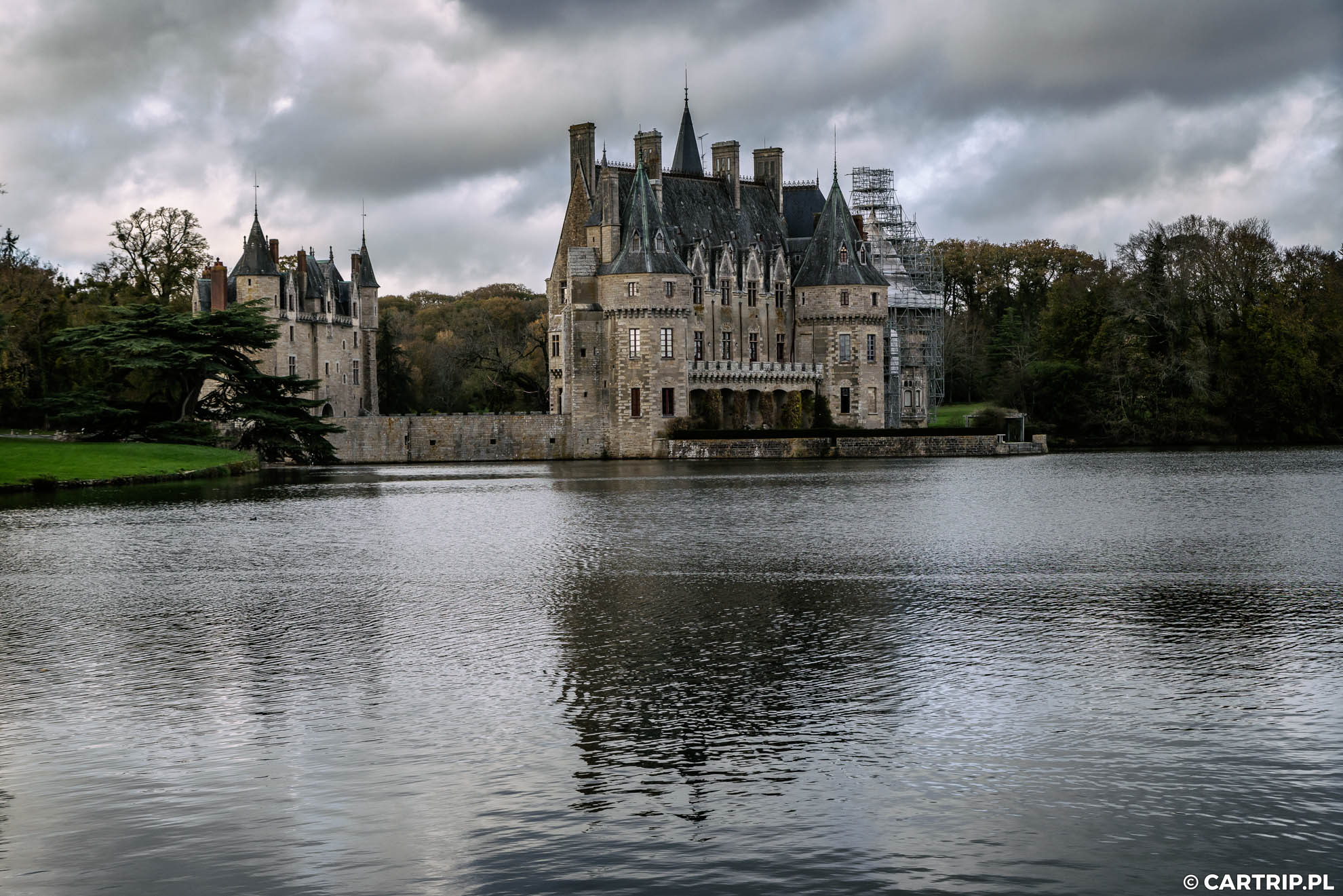 Kiedy ruszyłem dalej, krajobraz zaczął się zmieniać. Nagle, pośród zarośniętych dróg, wyrasta Château de la Bretesche — neogotycka rezydencja odbijająca się w spokojnej tafli jeziora. XIX-wieczna przebudowa dodała jej bajkowego charakteru, a miejsce okazuje się idealne na krótki postój i zdjęcia. Zaraz potem krajobraz zaczął się zmieniać — to kanały, laguny i mokradła w Parc naturel régional de Brière wyznaczają wjazd do jednego z najbardziej zaskakujących obszarów tej trasy.