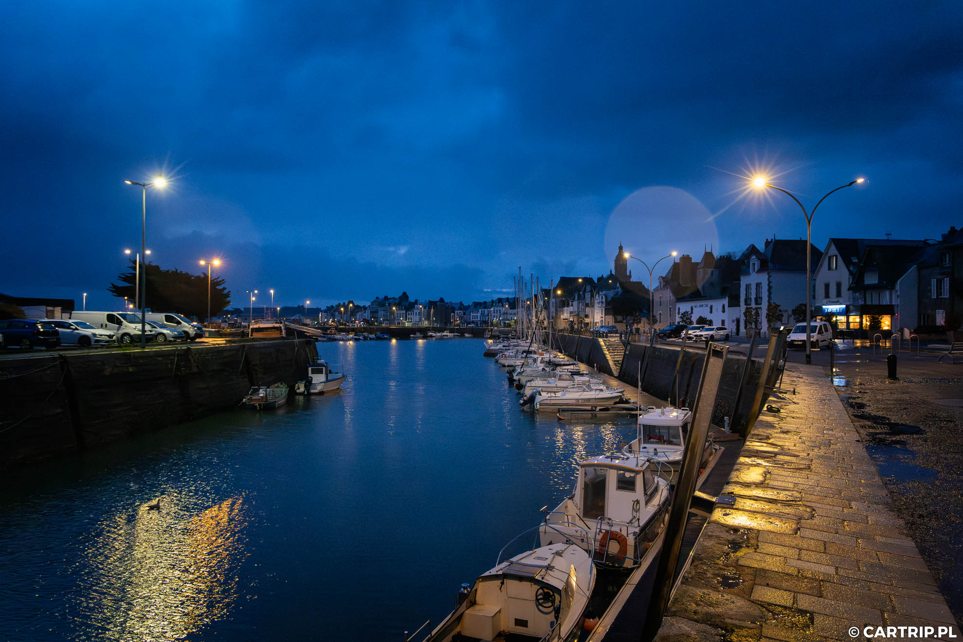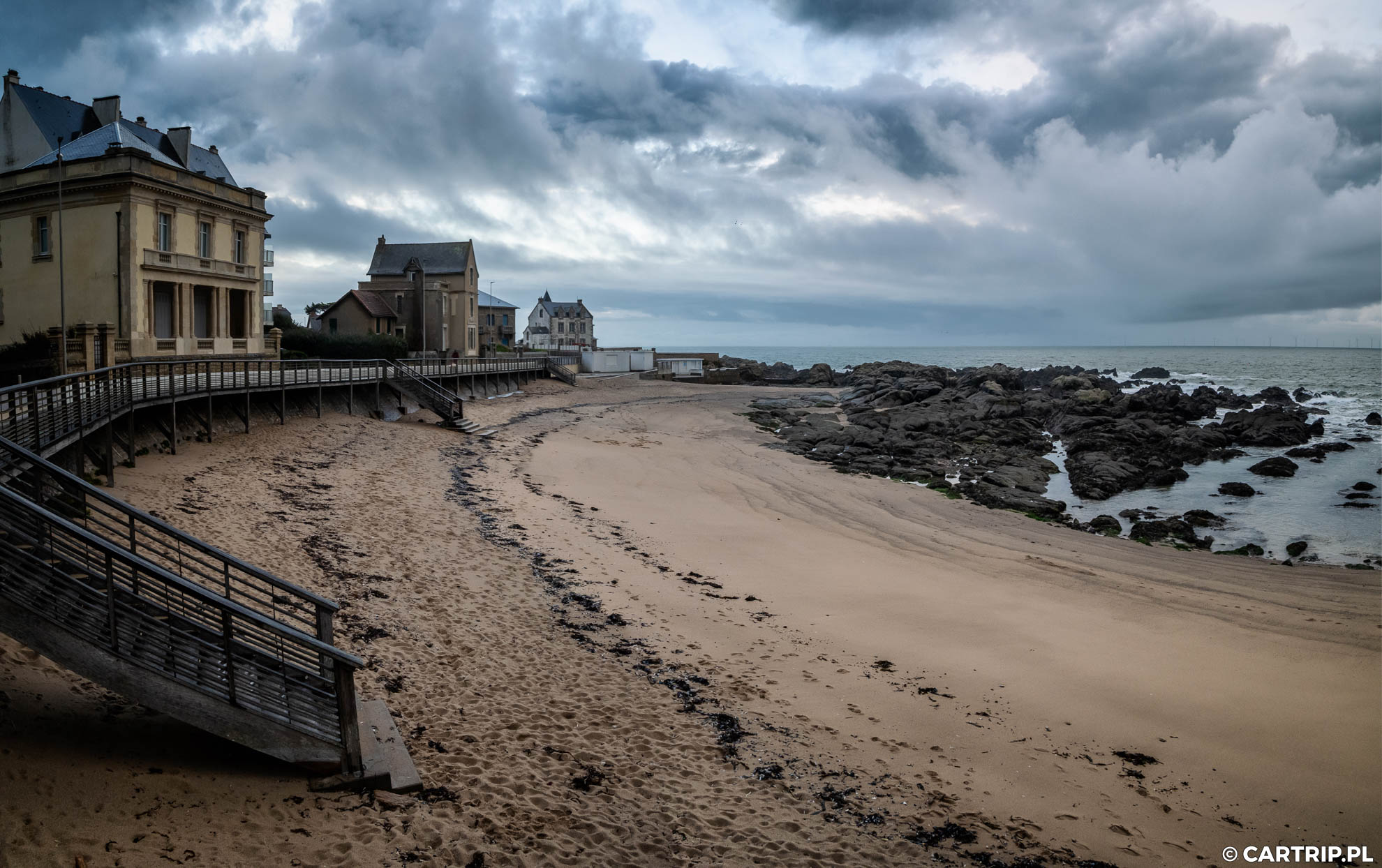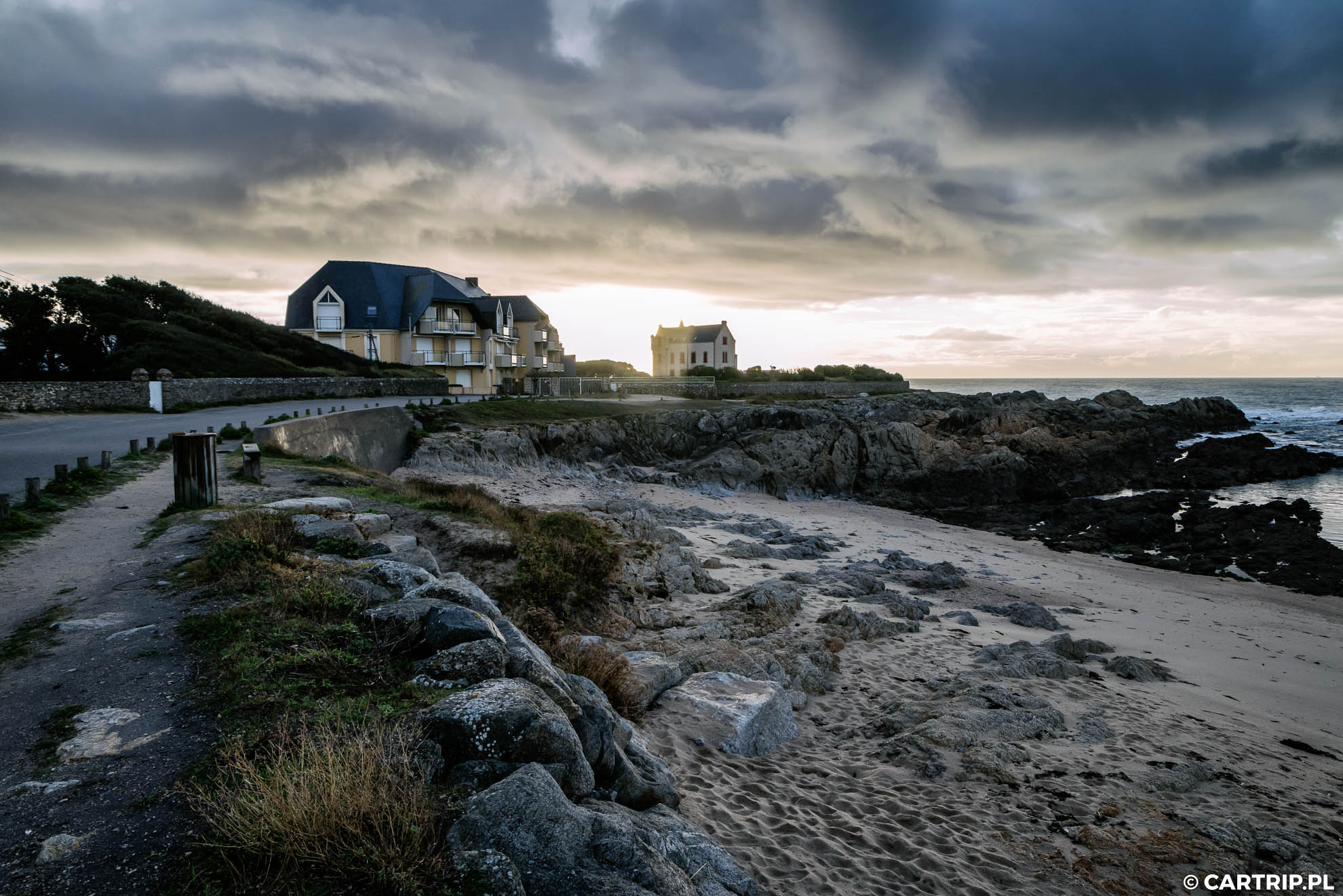 Noc spędziłem nad oceanem i rano ruszyłem w objazd Le Croisic. To miejsce ma niezwykły klimat: fale rozbijające się o granit, wąskie uliczki, bunkry z czasów wojny, stare wille i port z widokiem na jasną wydmę Pen Bron. Jechałem od zatoczki do zatoczki, zatrzymując się na parkingach i punktach widokowych. Klimat jak pocztówki sprzed kilkudziesięciu lat.