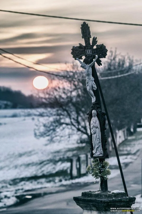 Głębokie równoległe skiby w rudej ziemi, przyprószone świeżym śniegiem jak puder na pierniku. Pole po horyzont, pole pod górkę i z górki, pole wielkie na kilka hektarów i małe jak obrus z ceraty. Pomiędzy nimi kępy drzew jak strażnicy i kapliczki wielkości karmnika dla ptaków. Witamy na Morawach gdzie zwykłe pole zachwyca jak górska przełęcz.